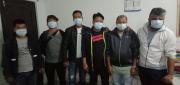 झापा- झापाको दमक नगरपालिका २ का मोहन कुमार तामाङको घरबाट तास खेलिरहेको अबस्थामा तामाङ सहित ६ जनालाई पक्राउ गरिएको छ । पक्राउ पर्नेमा घर धनि मोहन कुमार तामाङ, सोही स्थानका ३८ बर्षीय पुर्ण प्रसाद शिवाकोटी, ३० बर्षीय बिनोद श्रेष्ठ, ३७ बर्षीय दिल बहादुर श्रेष्ठ, सोही स्थान ३ का ३४ बर्षीय सुरेन्द्र नेम्वाङ र कमल गाऊपालिका ६ का ४१ वर्षीय दुर्गा बहादुर राई रहेका छन् ।हिजो बेलुका साढे ४ बजे ईलाका प्रहरी कार्यालय दमकबाट खटिएको प्रहरी टोलीले उनिहरुलाई ३ बुङ तास र नगद रु. १ लाख २० हजार ५०० सहित पक्राउ गरेको हो । पक्राउ परेका छ जना उपचार थप अनुसन्धान भईरहेको ईलाका प्रहरी कार्यालय दमकले जनाएको छ ।